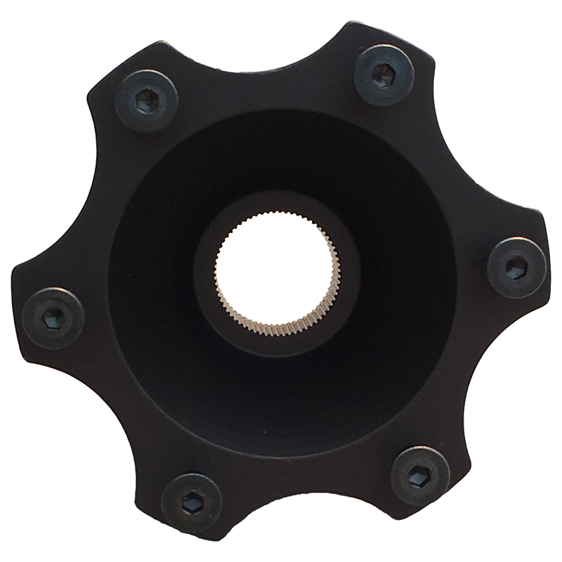 This piece weighs less than 1lb and utiles the Momo/Sparco/OMP 6 bolt pattern allowing you to bolt your 6 bolt steering wheel directly to it or insert a quick disconnect or a steering spacer, or both.